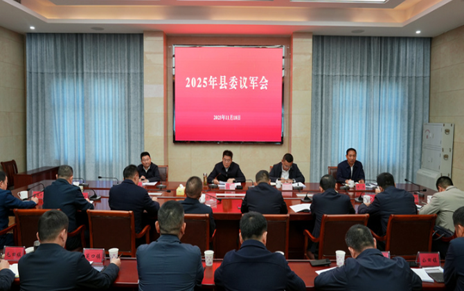 11月18日,我县举行县委议军会暨“军事日”活动,会议传达学习习近平总书记关于国防和军队建设的重要论述摘编,听取2025年党管武装工作情况汇报,研究相关工作。县委书记、县人武部党委第一书记肖湘晖主持会议并讲话。