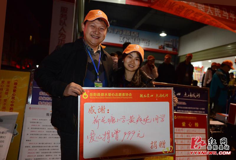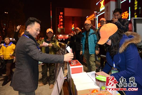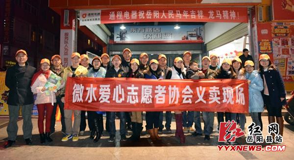 红网岳阳县站1月26日讯(分站记者 许伟军)1月25日晚7点,岳阳微水爱心志愿协会在县城步步高超市前面开展第十一场爱心义卖活动。此次义卖活动是2013年古历年最后一次活动,有三十多名志愿者先后来到义卖现场,为爱呼吁,为爱而歌。