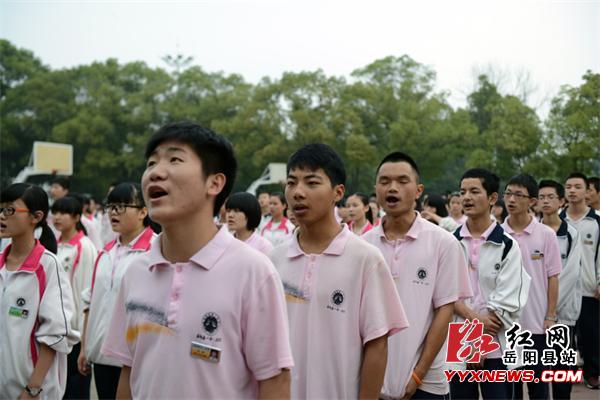 红网岳阳县站10月2日讯(分站记者 许伟军)“我们是共产主义接班人,继承革命先辈的光荣传统, 爱祖国 爱人民……”9月30日,岳阳县一中千余名学生齐唱爱国歌,嘹亮的歌声响彻了整个校园。