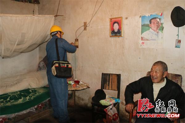 “龙师傅,您来了呀,实在是不好意思,前些年手里比较紧,经常欠点电费,感谢您帮我垫付,没有停过电,现在日子好过点了,再没有欠过电费了。”城关社区的特困户晏爹笑眯眯地对前来走访的辖区电工龙师傅说。“晏爹,您误会了,我们一是来看望您一下,二是来帮您检修一下线路和开关的”。城关客服班班长龚红文说,同时将一袋米,一袋面,一壶油递到老人手中,并安排工作人员对老人家的线路及开关进行检查。