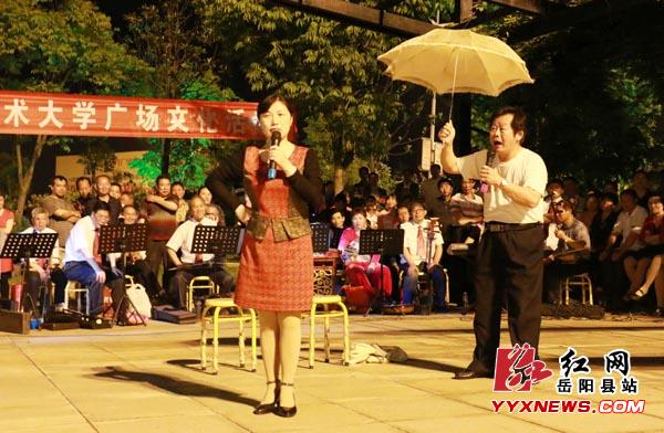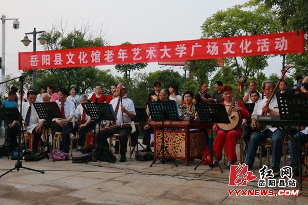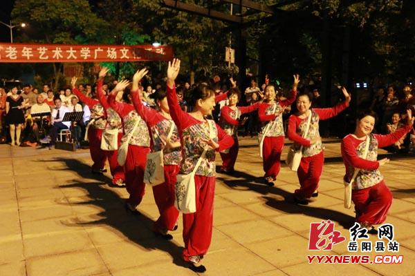 红网岳阳县站5月7日讯(分站记者 陈嵬) 5月5日晚上,县城荣湾湖休闲广场上舞姿妙曼,琴瑟和鸣。由县文化馆老年艺术大学主办的老年艺术大学广场文化展演活动在这里火爆开场,精彩表演引来数百名市民围观,不时掌声雷动,叫好声阵阵。