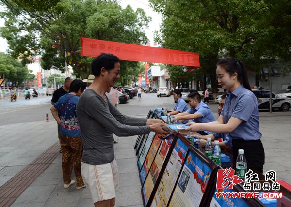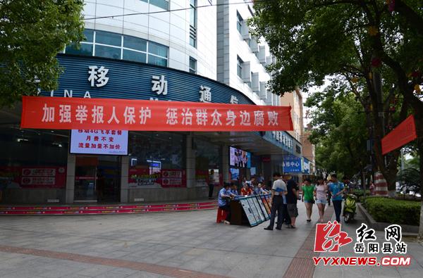 红网岳阳县站6月22日(分站记者 许伟军 通讯员 彭翔)6月21日上午,岳阳县检察院在县城东方路开展以“加强举报人保护,惩治群众身边腐败”为主题的2016年“举报宣传周”活动,县检察院副检察长缪星火带领相关科室负责人参加。