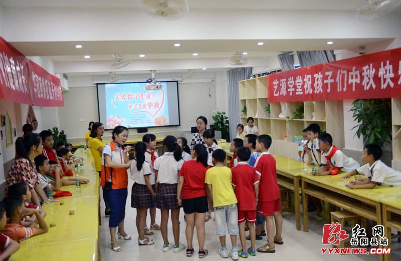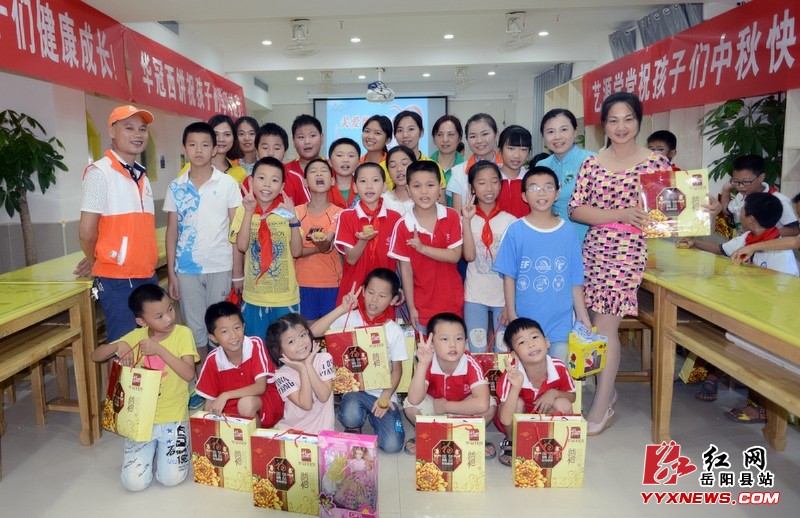 红网岳阳县站9月15日讯(分站记者 许伟军)“八月十五月儿明呀 ,爷爷为我打月饼呀,月饼圆圆甜又香啊,一块月饼一片情呀……”,9月14日下午,岳阳县开展“关爱留守儿童 牵手共庆中秋”志愿服务活动,来自明德小学、荷花塘小学的34名留守儿童参加活动。