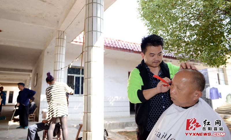 (志愿者为老人理发)