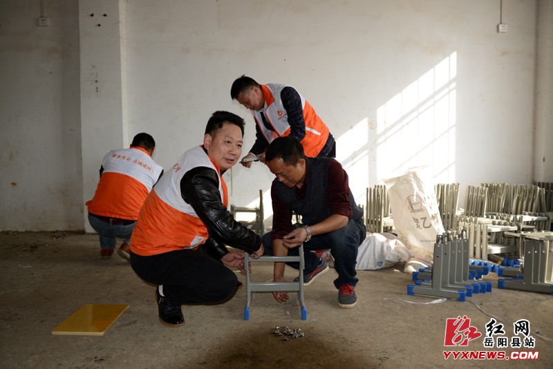 (志愿者帮助安装课桌)
