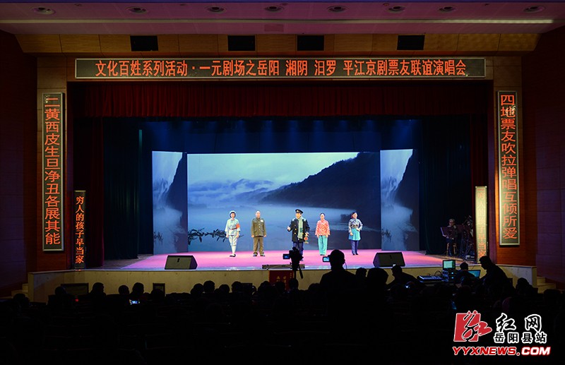 红网岳阳县分站4月8日讯(记者 许伟军)“四地票友,吹拉弹唱互倾所爱;二黄西皮,生旦净丑各显其能”。4月7日,文化百姓系列活动•一元剧场之“岳阳、湘阴、汨罗、平江”京剧票友联谊会在我县隆重举行,来自岳阳四县市的200多名京剧票友欢聚一堂,轮番登台演艺,共享艺术盛事。