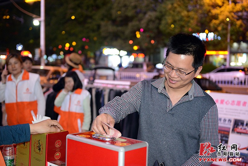红网岳阳县分站5月1日讯(记者 许伟军)4月29日晚,县微水爱心志愿者协会组织30多名志愿者在东方圣世广场开展第40场爱心义卖,共募集到爱心善款4248元。