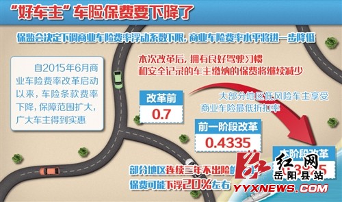 “从目前来看,车险改革推出的扩大费率下浮空间的政策,让消费者有望获得更大的保费优惠。改革前车险保费折扣最低为7折,一轮改革后‘七折令’取消,低风险车主最低折扣在4.3折左右。本轮商业车险改革后,预计最低折扣可下降至3.8折左右。消费者有更大的受惠空间。”保监会财产保险监管部主任刘峰说。