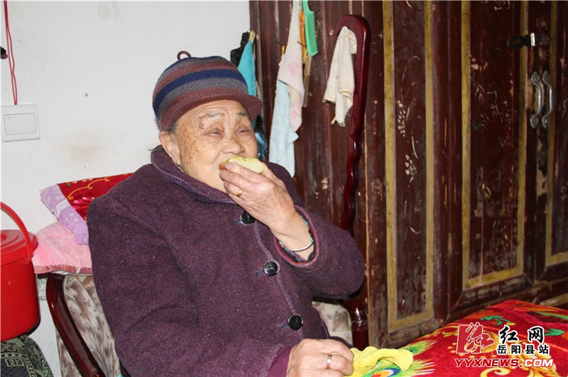 老人开心地吃苹果