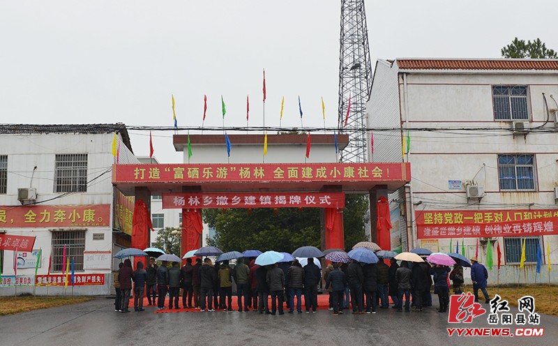 红网岳阳县分站1月5日讯(记者 许伟军 通讯员 方茜)1月4日,杨林乡撤乡建镇,正式更名为杨林街镇。县委组织部、民政局相关负责人等出席揭牌仪式。