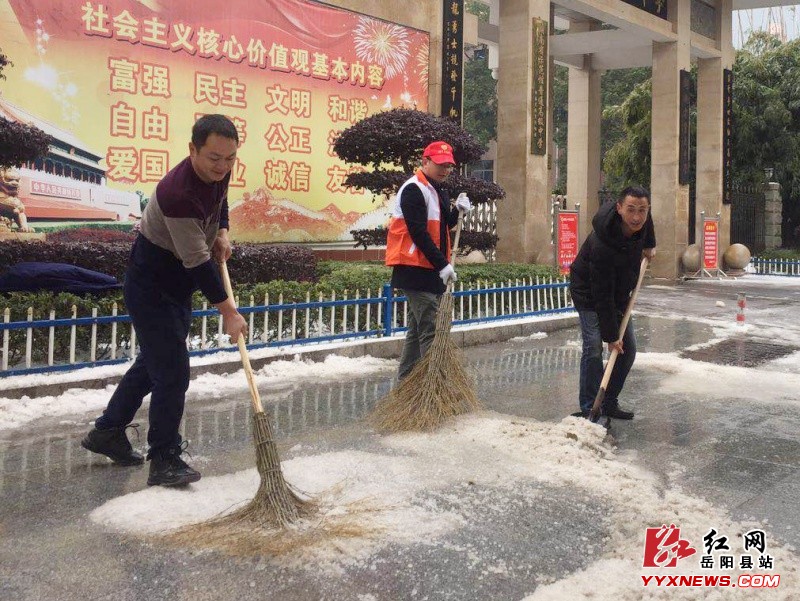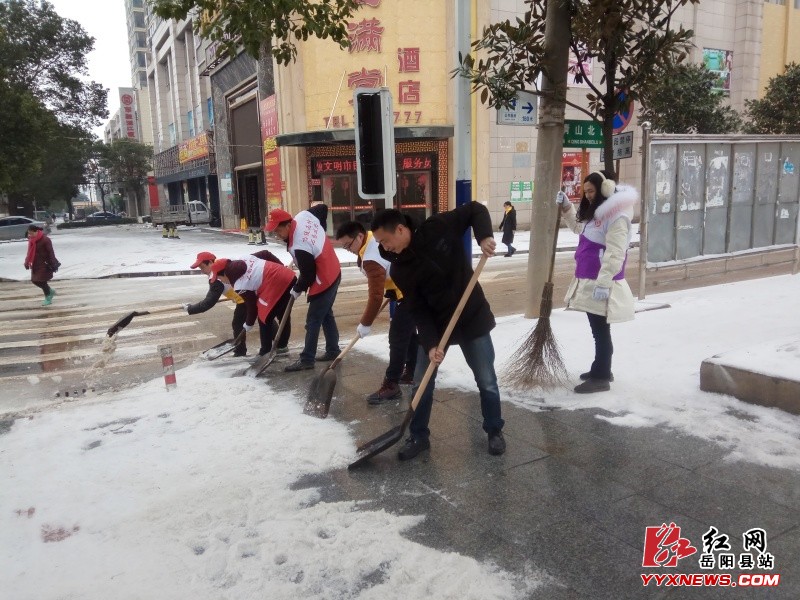 红网岳阳县分站1月28日(记者 付琴)荣城飞雪过后,道路积雪结冰严重,给过往的行人、车辆带来极大的不便和安全隐患。1月26至28日,县“七色之光”党员志愿者协会及市级以上文明单位的近百名志愿者,连续3天利用午休、周末时间上路扫雪除冰,给市民送上安全和便利。