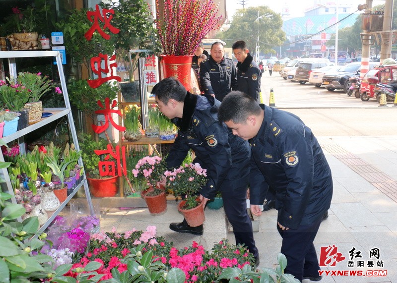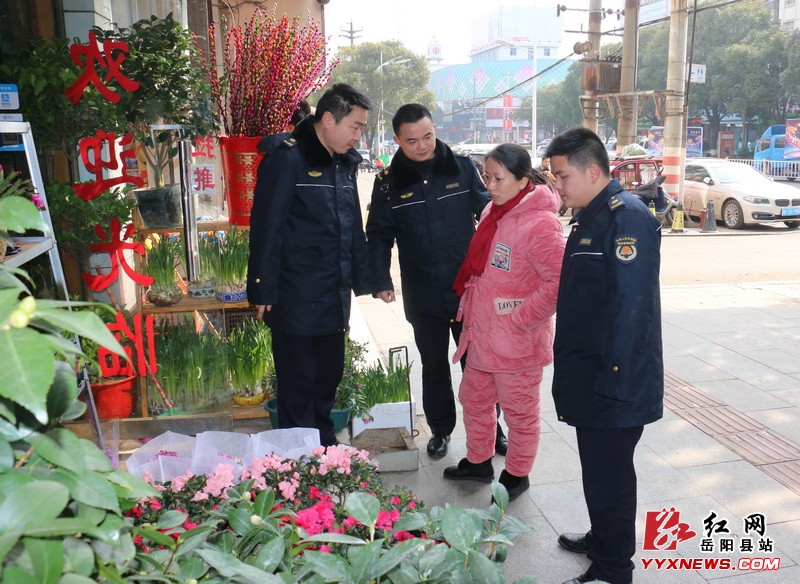 红网岳阳县分站2月1日讯(记者 袁颖)“请您将商品摆放进店,这样行人过路方便了,也避免您自己的东西被损坏。”在县城东方路一家花店门口,县城管大队城西中队执法队员正耐心劝导占道经营的店主,同时主动帮助将占道经营的花草、花篮等搬进店内,摆放整齐。
