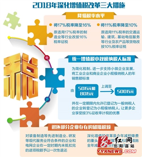党的十九大报告作出了深化税收制度改革的总体部署。2018年《政府工作报告》提出了“改革完善增值税,按照三档并两档方向调整税率水平,重点降低制造业、交通运输等行业税率,提高小规模纳税人年销售额标准”的要求。