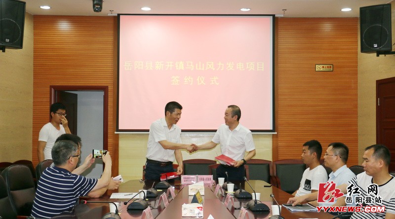 红网岳阳县分站5月18日讯(记者 袁颖)5月17日,新开镇马山风力发电项目正式签约,县委常委、副县长邹志伟,中南勘测设计研究院有限公司副总经理狄立勋出席签约仪式。