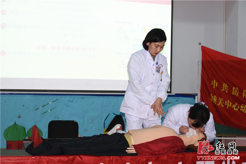 红网岳阳县分站12月6日讯(记者 李雨桑)12月5日,第33个国际志愿者日,县人民医院联合县七色之光党员志愿者协会、县红十字会走进荣家湾镇城关中心幼儿园,为学生家长和老师带来了一堂生动活泼的医疗救护知识培训。