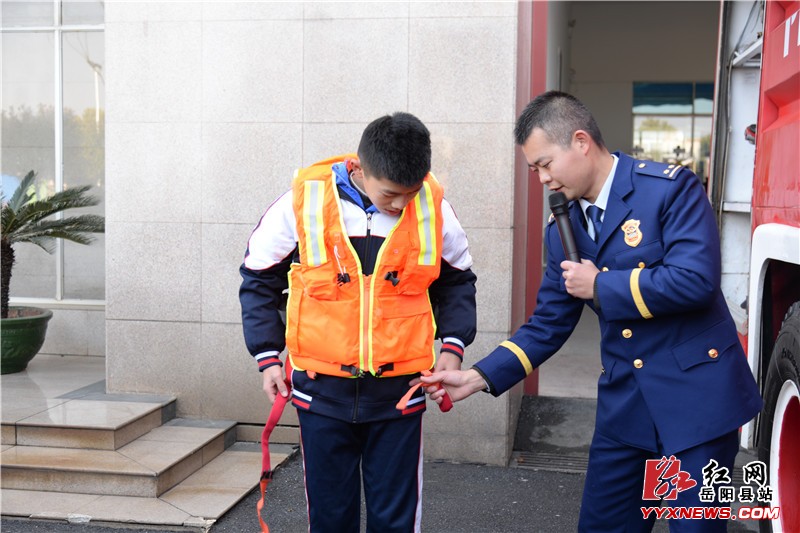 消防队员讲解救生衣的使用方法