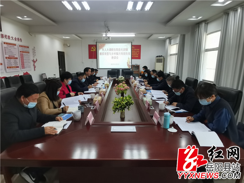岳阳县融媒体中心12月6日讯(记者 周星亮)12月3日,市人大常委会副主任赵岳平深入我县毛田、筻口等乡镇调研乡村振兴工作,从多产业多角度探究如何推进脱贫攻坚与乡村振兴有效衔接。县人大常委会主任周峰,县委常委、副县长贺立,县人大常委会副主任任三星和市县相关单位负责人参加。