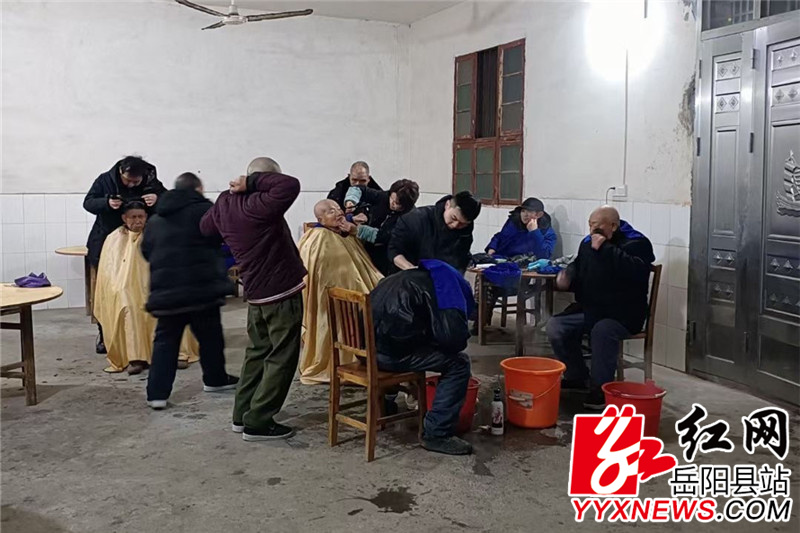 熊晓英带上自己的员工 晚上加班为老人理发
