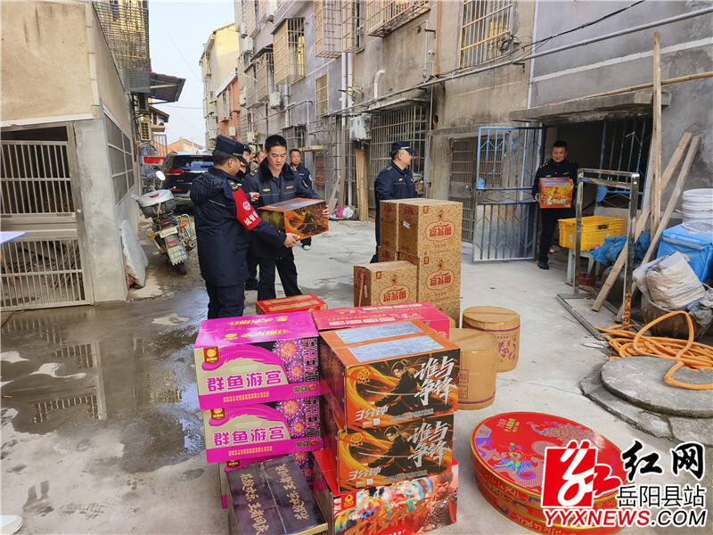 岳阳县融媒体中心2月12日讯(龚若枫)2月10日,县“禁炮”专班根据市民举报线索,快速出击,在荣家湾街道庆荣路嘉和新区居民点成功捣毁一非法储存烟花爆竹窝点,现场查获烟花爆竹46件、鞭炮109盘及散炮若干,及时拔除了一颗藏在居民区的“定时炸弹”。