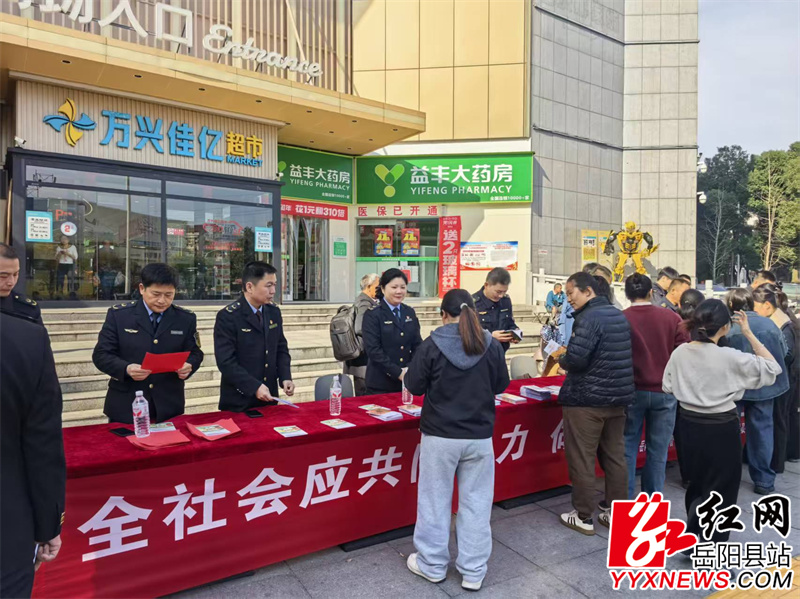 岳阳县融媒体中心3月16日讯(岳阳县市场监督管理局)3月13日,岳阳县市场监督管理局、岳阳县消费者权益保护委员会在全县开展“3·15”国际消费者权益日宣传活动。本次活动以“优化消费环境 提振消费信心”为主题,县公安局、县国资委、县烟草专卖局、县数据局、县消防救援站、荣家湾街道、各乡镇人民政府和各乡镇司法所、派出所、应急办、综治办等二十余家单位参加。