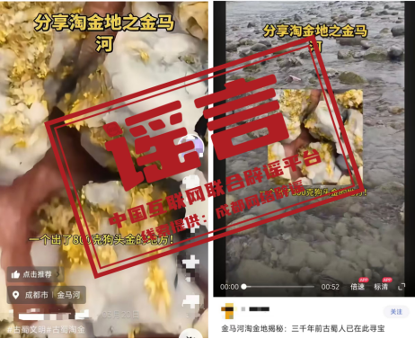 辟 谣 “金马河现800克狗头金”视频系拼接剪辑