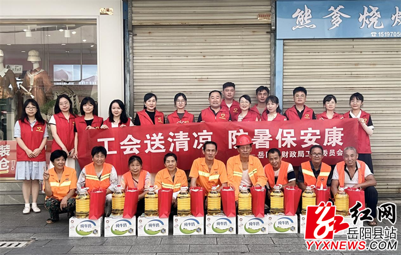 岳阳县融媒体中心8月10日讯(通讯员 刘志豪)8月9日上午,县财政局开展“工会送清凉,防暑保安康”慰问活动,为高温期间仍坚守岗位的一线环卫工人送去夏日清凉和亲切的问候。