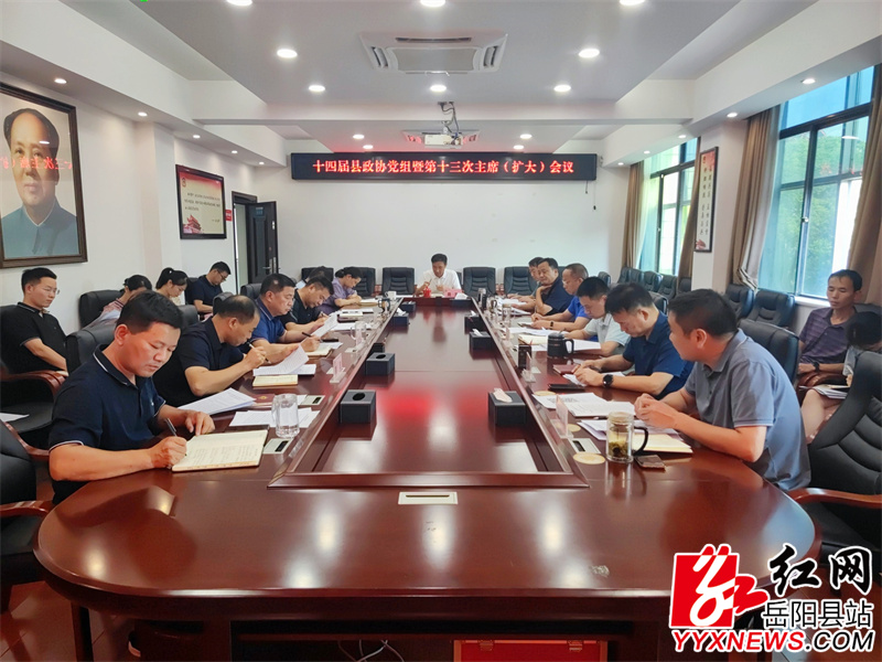 岳阳县融媒体中心8月21日讯(记者 周昱君)8月18日,县政协主席周里主持召开县政协党组暨主席(扩大)会议,副主席刘卫兵、彭荣欣、张忠新、王敏及县纪委监委派驻负责人、县政协机关“一办六委”全体干部职工参加会议。