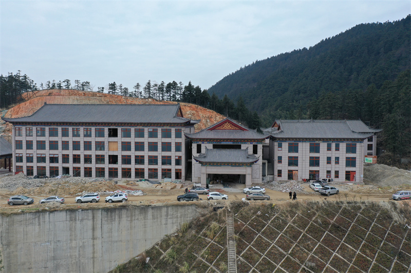 白云回望合,青霭入看无。走进大云山黄粱伞,建设中的五星级旅游度假酒店凌云温泉酒店分外夺目,已具雏形的酒店主体大气,飞檐翘角,古色古香。而酒店内部也热闹非凡,数十名工人分布各区域施工作业,为酒店早日竣工争分夺秒。