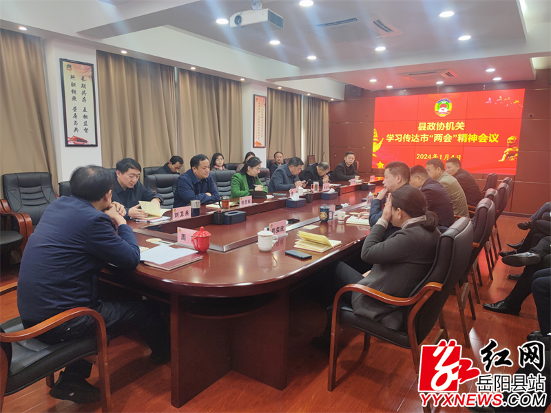 岳阳县融媒体中心1月5日讯(记者 周昱君)1月4日,县政协召开会议学习传达市两会精神,安排部署下阶段工作。县政协主席周里出席并主持会议,副主席刘卫兵、彭荣欣、张忠新、王敏、敖珊及机关全体人员参加会议。